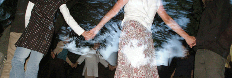 Weil es super- gute Laune macht! Alle Gäste sind eingeladen, mitzutanzen, alt und jung, klein und groß und im Nu sind alle miteinander verbunden, berührt, in Bewegung - im großen Kreis, als Schlange, Spirale… - zu ausgewählter Musik, passend ausgesucht für Sie und Ihre Gäste, passend auch zum Anlass Ihres Festes. Tänze gibt es zu allen Themen: Willkommen, Abschied, Trauer, Neubeginn, Freude, Unterhaltung… In meinem Repertoire sind Tänze aus vielen, überwiegend europäischen Ländern: aus Griechenland und der Türkei, dem Baltikum und vom Balkan, keltische und israelische Tänze, traditionelle und neue Tänze, Partytänze, … Ein Fest ohne Tanz? Da fehlt doch was! Jeder kann mitmachen, Ungeübte und Profis. Fehler gibt es nicht, nur Variationen. Dem Weg der Begeisterung folgend, helfe ich gerne mit, dass auch Ihr Fest zu einem unvergesslichen Erlebnis wird. Lassen Sie sich bezaubern von Tanzfreude und mitreißender Festlaune! |